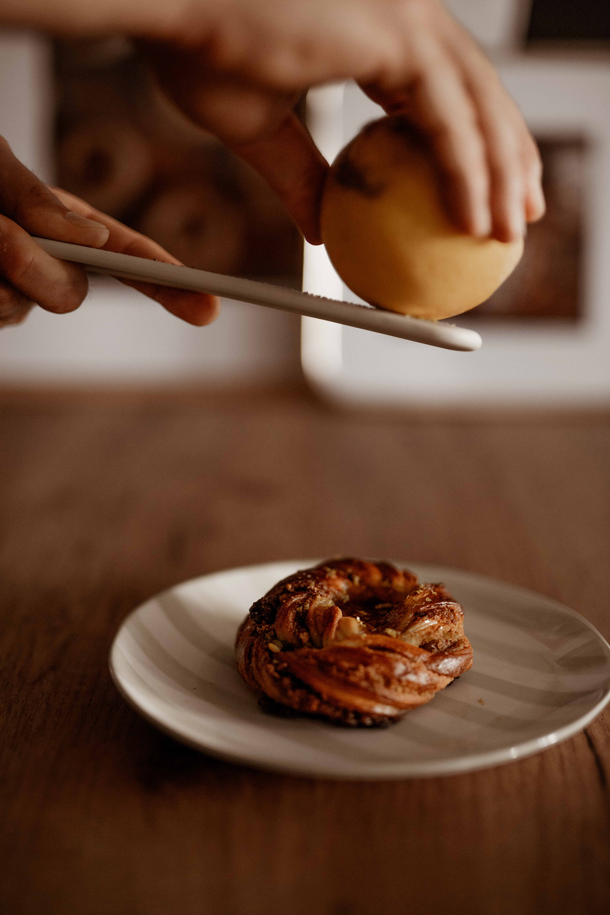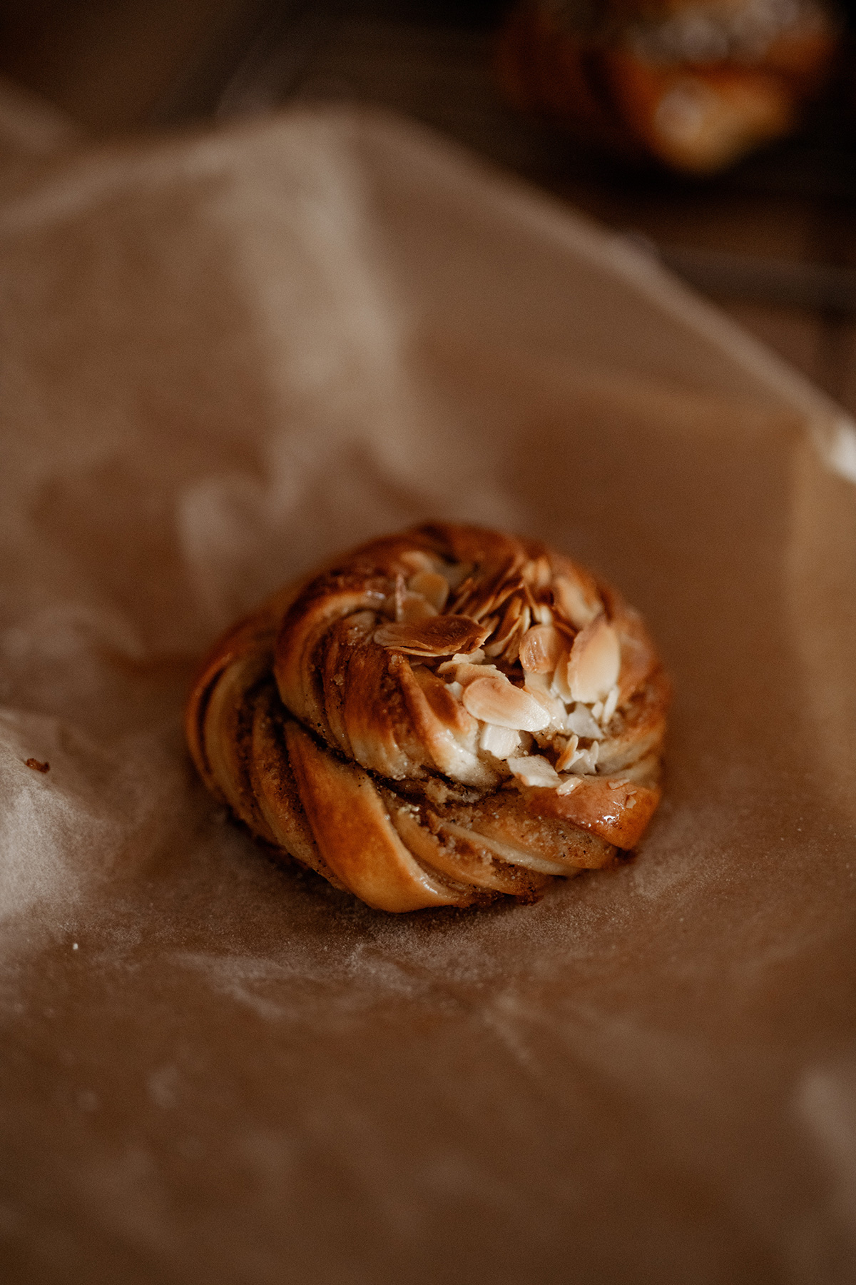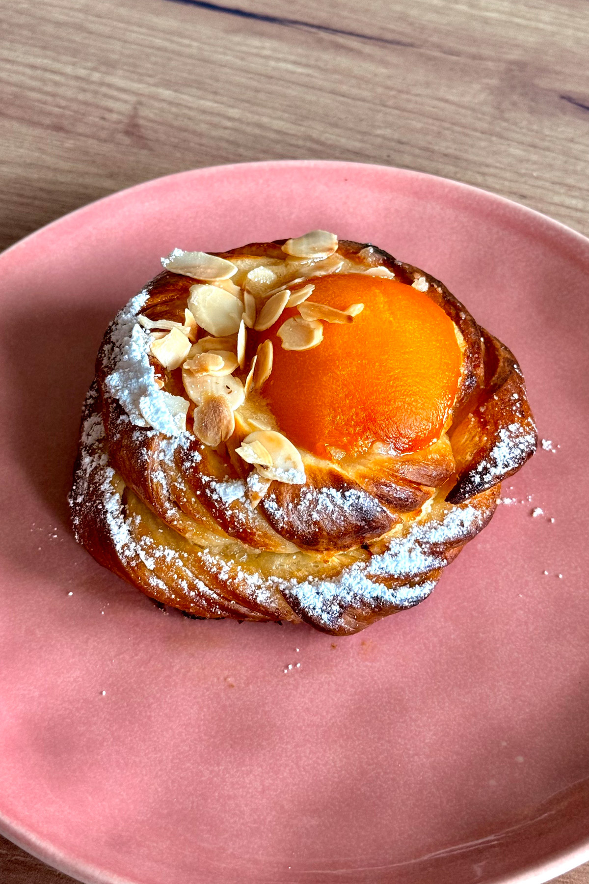 bułeczka drożdżowa z migdałowym kremem frangipane i brzoskwinia